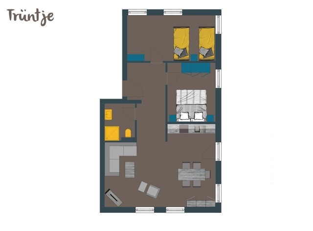- max. 5 Personen, 1 Schlafzimmer mit Doppelbett, 1 Zimmer mit 2 Einzelbetten, 1 Zimmer mit 1 Einzelbett