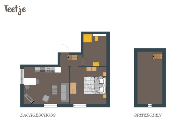 - 72 qm, auf zwei Etagen (EG: wohnen, OG: schlafen) mit eigener Terrasse und separatem Eingang